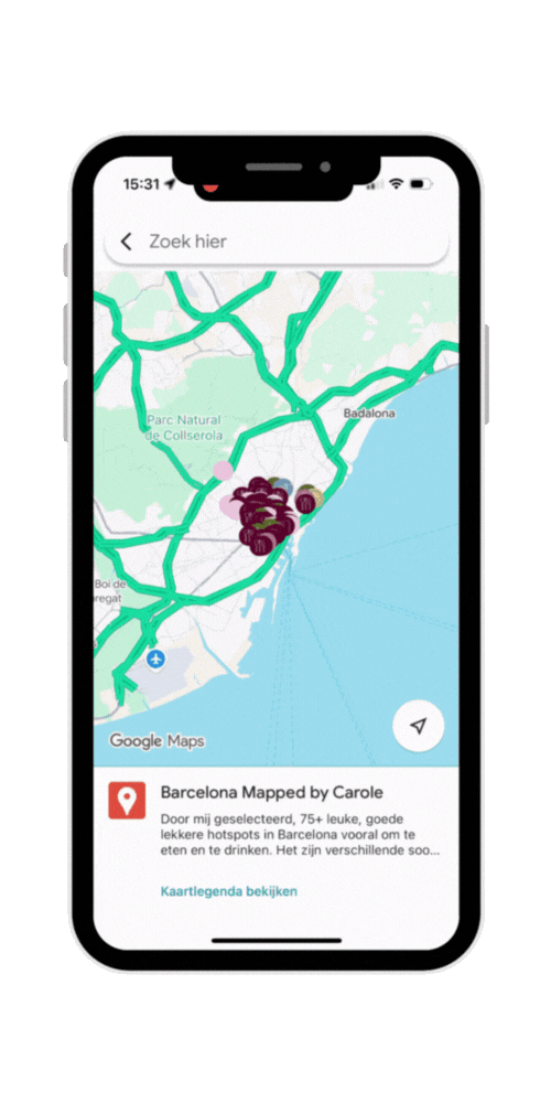 Zonder keuzestress, eenvoudig en rechtstreeks in jouw Google Maps app de mooiste plekken van Barcelona ontdekken, ter plekke live
